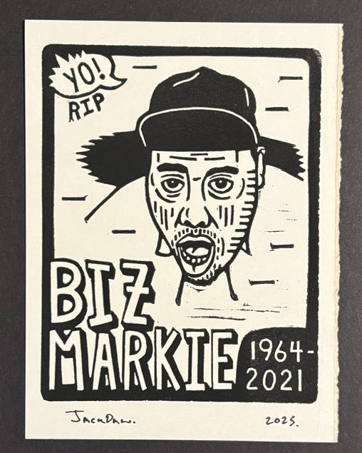 Each piece is carved by hand and lovingly and uniquely printed via old-timey roller press onto hand-torn and tea stained 140lb art paper.